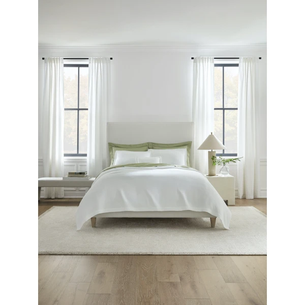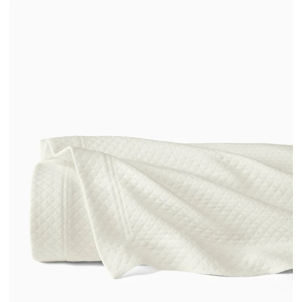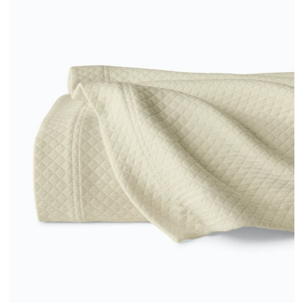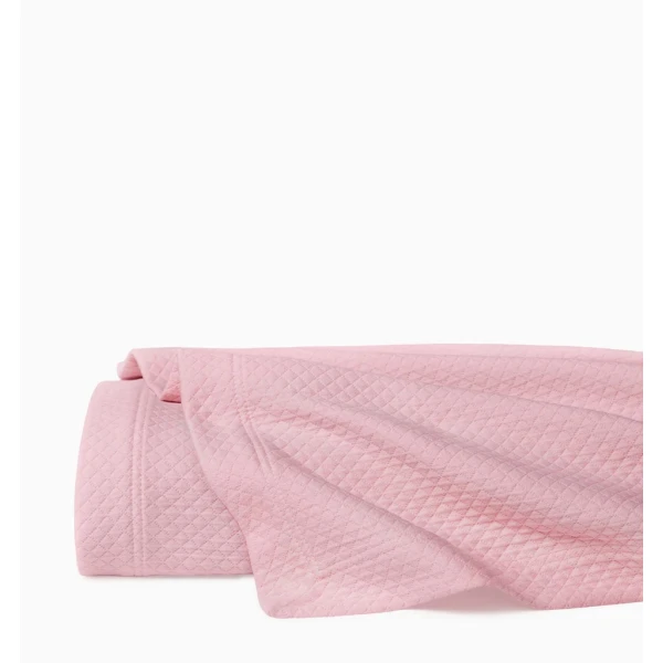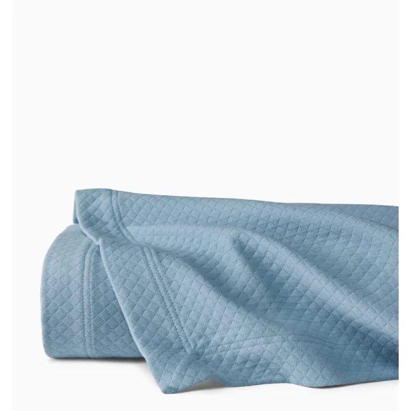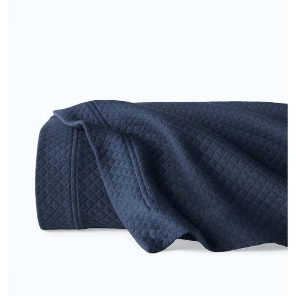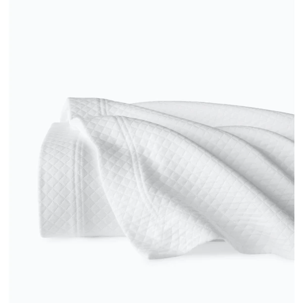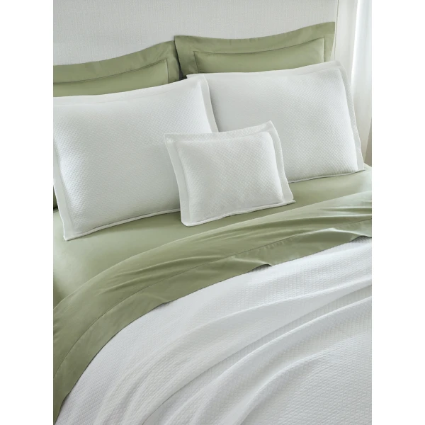 Sferra's Rombo is simple yet beautiful.  The matelasse and shams are of a minimalist pique.  It is finished with a double need stitching for a subtle diamond finish.  Blanket cover has 2" shortened flanges, shams have 1" shortened flanges, and boudoir has 1" shortened flanges.  Plain hem finish.  Piece dyed pique.  100% pre-washed cotton.  Portugal.
