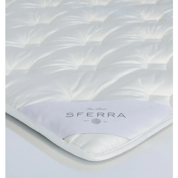 Sferra's Sonno Notte Comfort Topper is an exceptional mattress topper that provides luxurious support on top of your mattress. Finished with silk blend Belgian damask ticking and