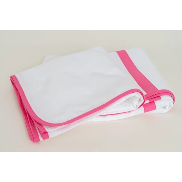 Dotti Pique with Border is simple yet sophisticated white Pique. Curtains have a 1" flange. Color borders on white bird’s eye pique: Black, Blush, Bordeaux, Caramel, Caribbean blue, Chocolate, Fern Green, Graphite Grey, Grey, Lavender, Lilac, Lt. Blue, Lt. Green, Lt. Periwinkle, Mid-Blue, Natural, Navy, Opal, Orange, Periwinkle, Pink, Sand, Sea Glass, Silver, Slate Blue, White, Yellow. Finished in Italy. Constructed in USA. *Bedskirts unlined. Please specify. Decking or panel with pins; ruffled or tailored with center pleat.