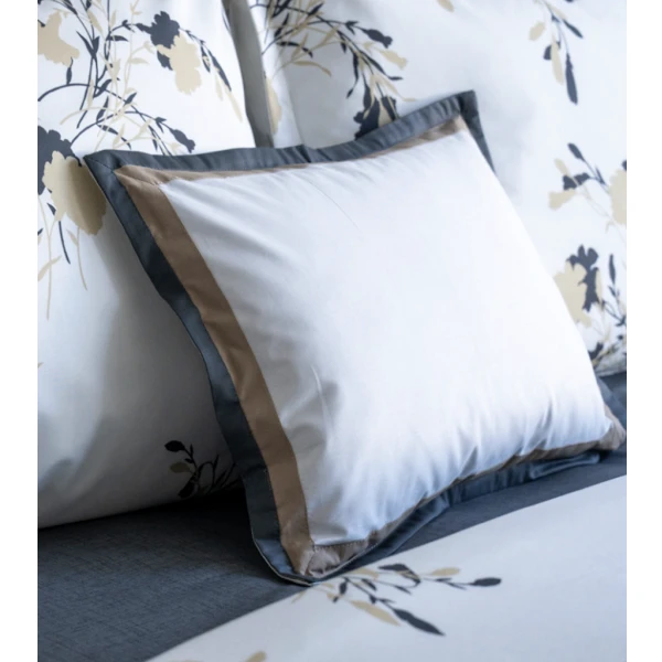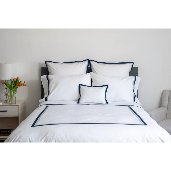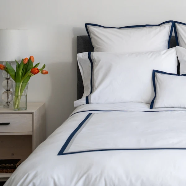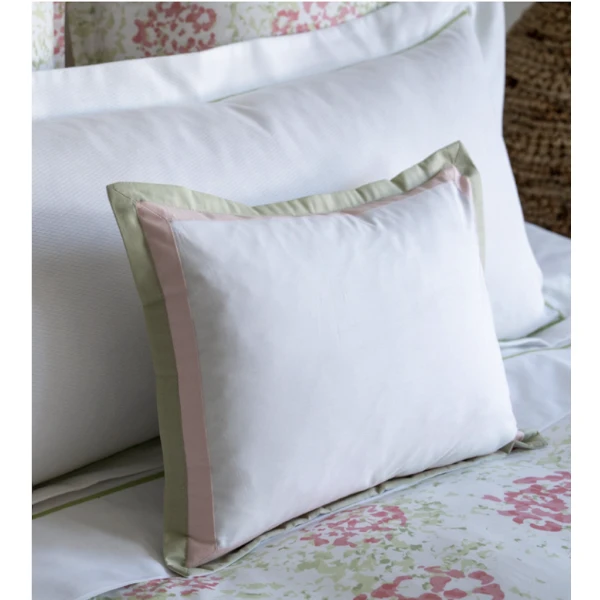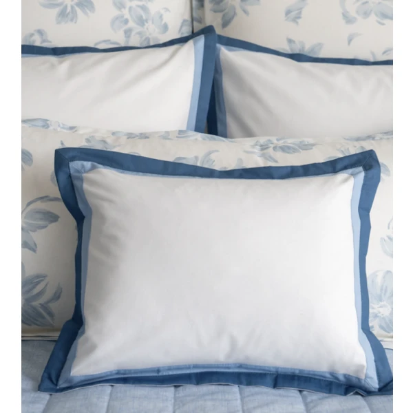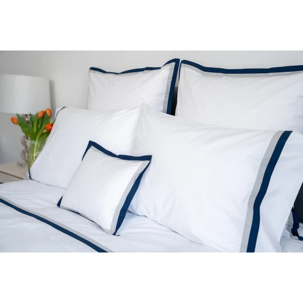Stamattina's Hudson is a bespoke product and is customized to your specifications. Shams have a 3/4” flange. Colors on white background: Narrow double border colors please refer to Camilla. Woven in Italy. Constructed in USA.