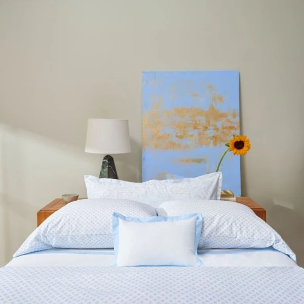 Stamattina's Sofie is a darling bedding.  Its a small ikat pattern resembling little diamonds.  Printed and finished in Italy. Constructed in the USA.