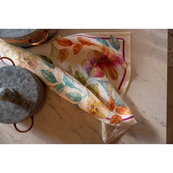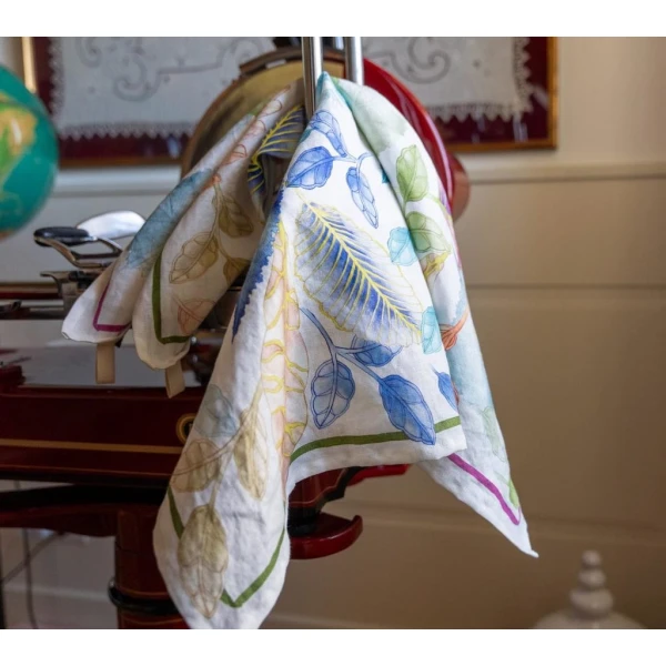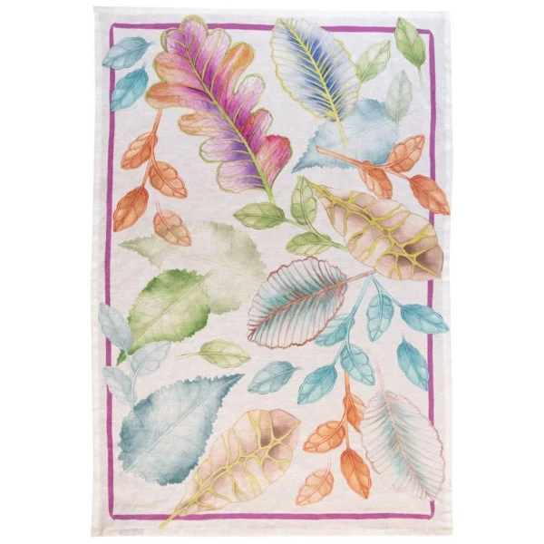 Tessitura Toscana Telerie is a wonderful linen company that makes all their products in Tuscany, Italy. Their kitchen towels are so pretty they could be wall art but strong enough for regular use. Foliage Rosa's design has stunning jewel toned leaves with a lavender border. Use in your kitchen or place in your powder room as they are perfect as a hand towel. 100% linen, they're perfect for lint-free drying. Made in Italy.