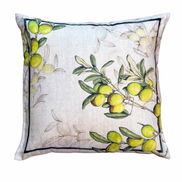 Tessitura Toscana Telerie is a wonderful linen company that designs and manufacturers all their products in Tuscany, Italy. Their decorative pillows are just stunning. Aida celebrates the olive fruit with gorgeous purple and yellow olives and its branches. 100% printed linen.
