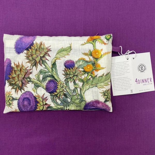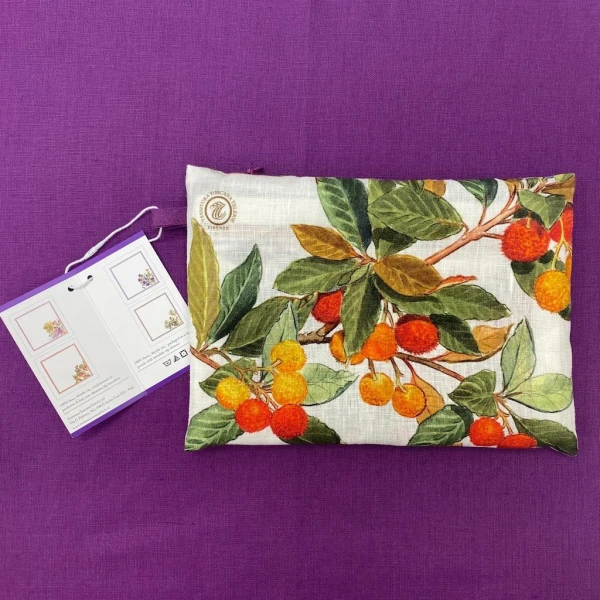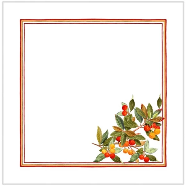 Tessitura Toscana Telerie Argentario Dinner Napkins are so sweet and sassy. Each four-piece set features 4 different subjects designed with the usual refinement, taste and artistic flair of Tessitura Toscana Telerie. In this set you will different floral and fruit arrangementsThese napkins are for those who love beauty in everyday life. Simple hem with mitered corners. 100% linen. Made in Italy.