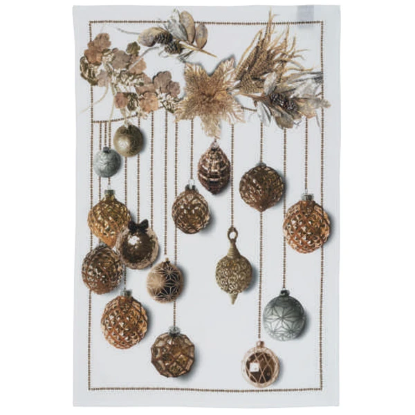 The Glitter tea towel features Christmas ornaments hanging from strings of beads and adorned with pine cones and gold and silver leaves. This tea towel is available in two color ways. Tessitura Toscana Telerie is a wonderful linen company that makes all their products in Tuscany, Italy. Their kitchen towels are so pretty they could be wall art but strong enough for regular use. Perfect as a hand towel and they're perfect for lint-free drying. 100% linen.