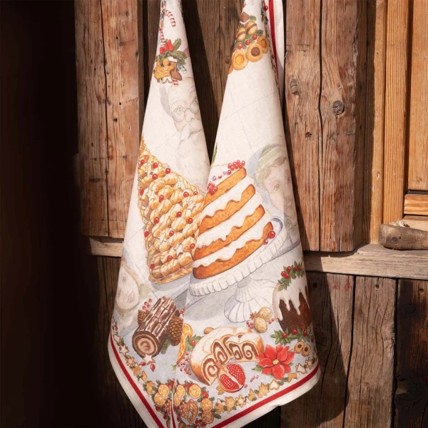 Tessitura Toscana Telerie is a wonderful linen company that makes all their products in Tuscany, Italy.   A delicious display of traditional Christmas confectioneries from a local Italian bakery make up the design of this collection. Their kitchen towels are so pretty they could be wall art but strong enough for regular use.  Perfect as a hand towel and they're perfect for lint-free drying. 100% linen.