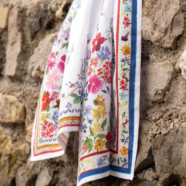Tessitura Toscana Telerie is a wonderful linen company that makes all their products in Tuscany, Italy. Their kitchen towels are so pretty they could be wall art but strong enough for regular use. Primula Blu Kitchen Towel is sweet and colorful. The design has darling buds of all colors. The multi layered border with different patterns and colors makes it a beautiful offering. It will add the perfect pop of color to your home. 100% linen, they're perfect for lint-free drying.