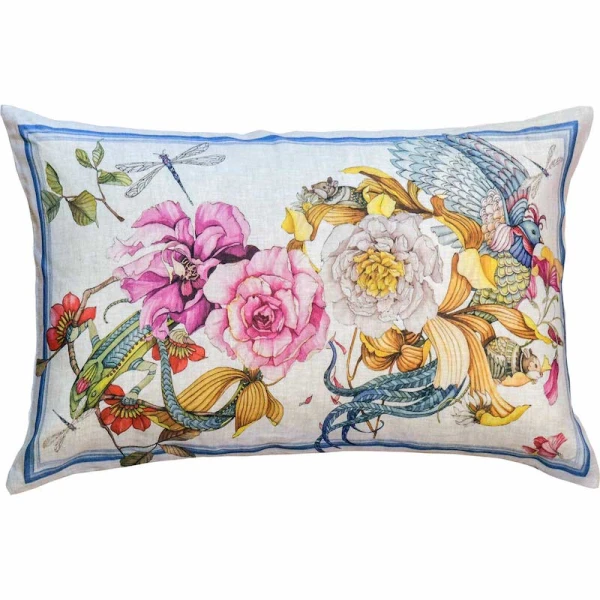 Tessitura Toscana Telerie is a wonderful linen company that designs and manufacturers all their products in Tuscany, Italy. Their decorative pillows are just stunning. Semiramide is magical. Wondrous animals, creatures and flowers all living together in harmony. This collection is colorful and fanciful. 100% linen.