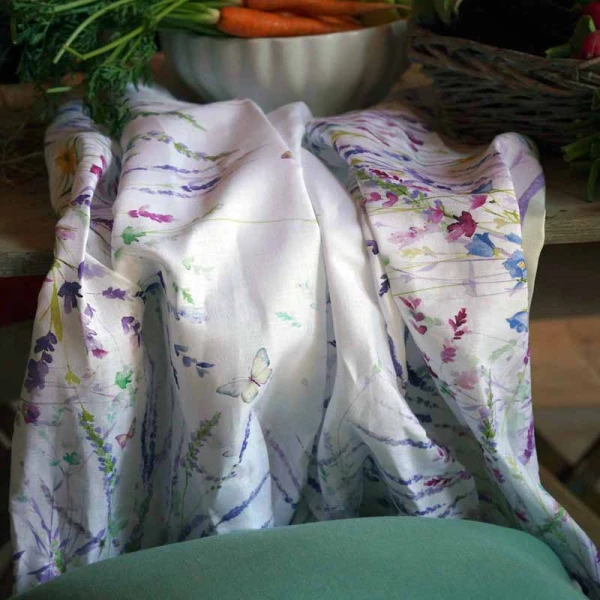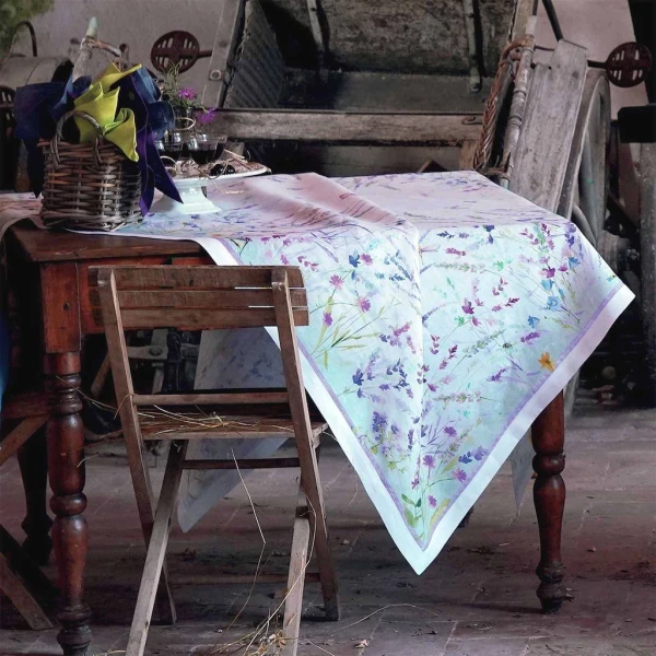 Tessitura Toscana Telerie is a wonderful linen company that makes all their products in Tuscany, Italy.  Spigo is sweet, colorful and has a fresh watercolor look.  Runners are engineered.  Tablecloth have self hem finish and mitered corners.  Printed on 100% linen.  We are proud to import their products for the US market.