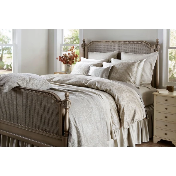 Purists Livenza is a modern twist on a classic botanical design that combines tradition and urban elegance. The maidenhair fern pattern is woven in cotton making it truly luxurious. 60% Egyptian Cotton / 40% Linen. Jacquard boutis. Woven in Italy.