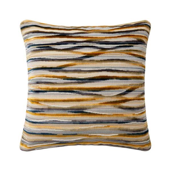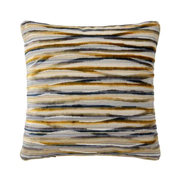 Yves Delorme's Agate Iosis Decorative Pillow is stunning. Genoa velvet cushions that are streaked with sculpted velvet ribbons on a speckled canvas background. So enchanting and sunny with yellow ochres and beiges. Woven in Belgium. Cushion covers, front and back in velour. Piped finish in velour and zipper closure at the bottom of the cushion cover.79% viscose, 21% polyester. Made in Belgium.