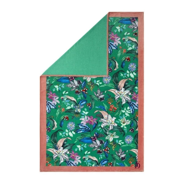 Yves Delorme's Bahamas Beach Towel is printed on velour. An archipelago of coral reefs in the Atlantic Ocean, the Bahamas is known for the biodiversity of its flora and fauna and for its pink sandy beaches. This botanical print immerses you in the luxuriance of idyllic tropics, between a fantasy landscape and sublime blossoms. Printed velour, embroidered beach towel. 100% cotton.