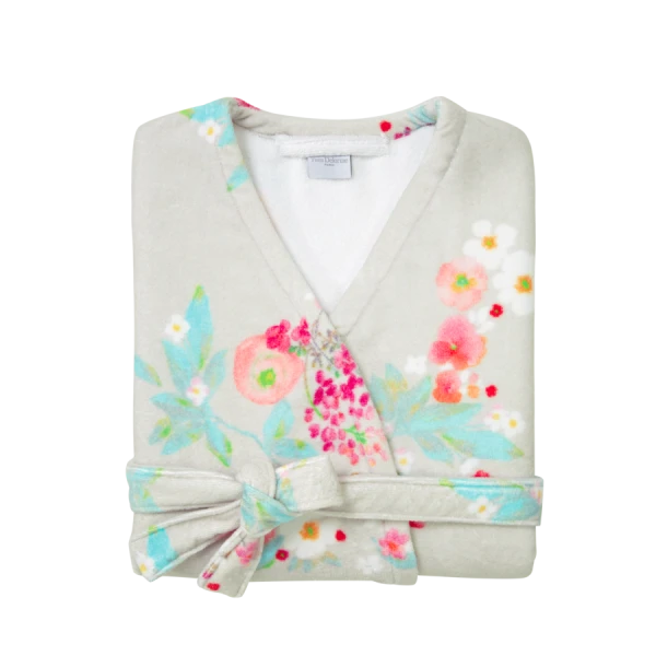Yves Delorme's new Boudoir collection is an evolution from the first frost to the full blush of spring. The colors in this pattern are symphony of florals during our ever changing seasons. Towels are 100% cotton printed velour and embroidered. The robes are 100% cotton printed velour.