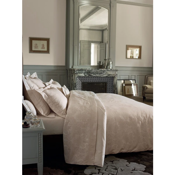 Chic is a throw back to wonderful Yves DeLorme jacquard woven patterns of the past. A classic all over damask thistle print on one side is translated to a small scattering of thistle hearts on the reverse side. The shams and flat sheet are finished with a single saddle stitch. Essentially feminine, Chic is a classic that stands alone or works with the contemporary look of Must Have.