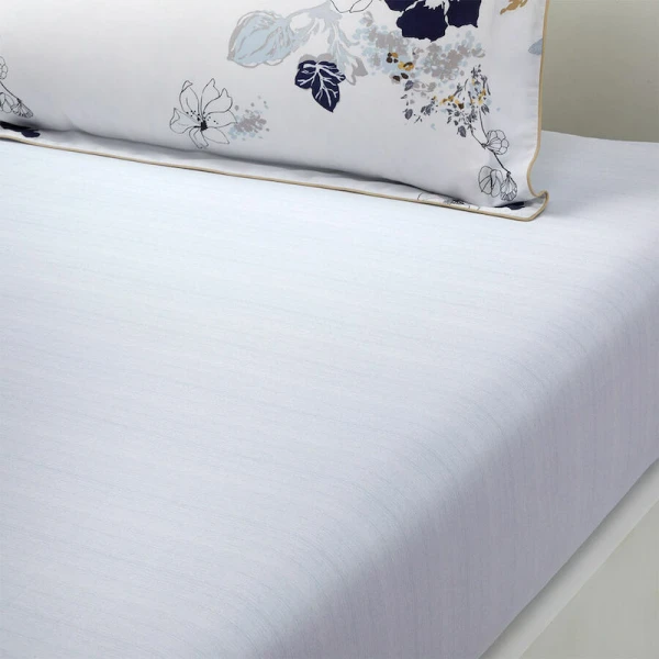 Flat sheet with a 4-inch applied border on the back in the coordinated pattern and piped finish.