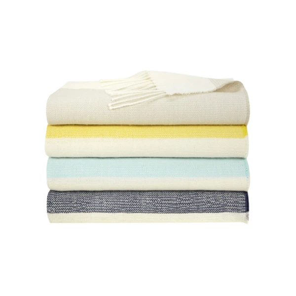 The Egee throw is 100% alpaca. Super soft, it is woven in large stripes in four different colors.
