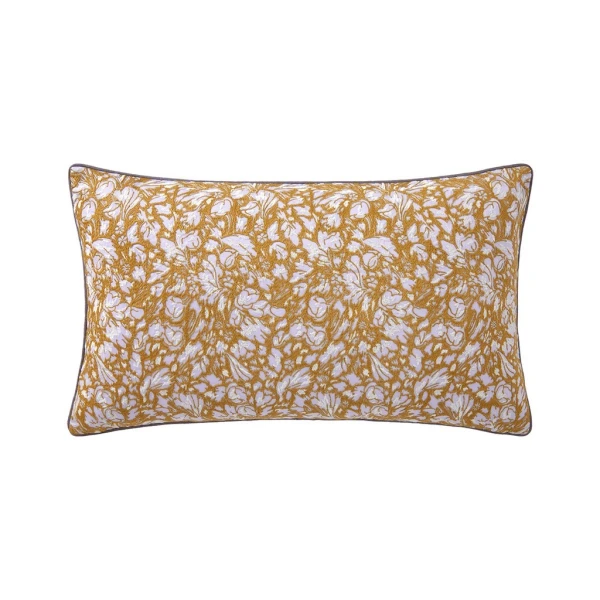 Yves Delorme's Givre Decorative Pillow has an embroidered front of winter flowers. The reverse side of the pillow is a solid color. Piped finish. Zipper closure at bottom of cover. Designed in France and made in our partner workshops in India. Down & feather insert included. 100% cotton.