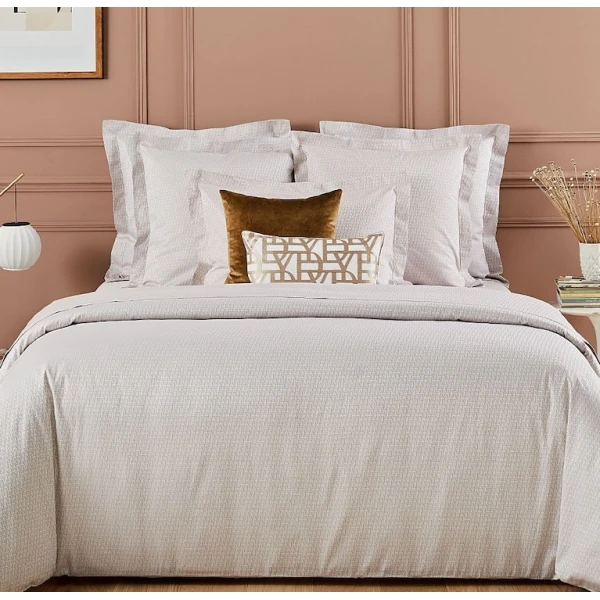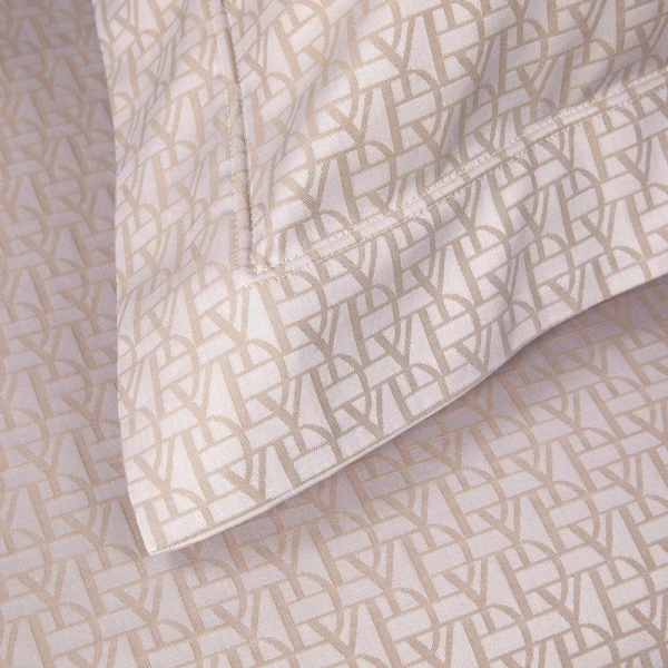 Yves Delorme's Initial Collection is an elegant silvery sand toned monogram signature on a jacquard bedding. The brand's monogram makes for an ultra chic design for Yves Delorme.