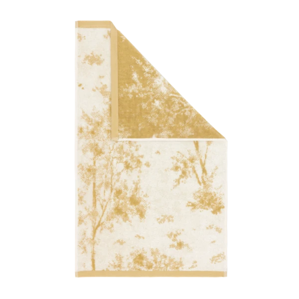 Yves Delorme's Legende Bath Linens Collection is graceful.  The design is of foliage that tells a story of delicate weaving in golden light. Terry two color jacquard towel with a border finish. 100% organic cotton, 470 gsm. Made in France.