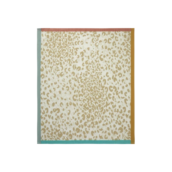 Yves Delorme's Leopard tea towel is on spot! Leopard spots that is. This tea towel has wonderful animal pattern with a border of two accent colors.