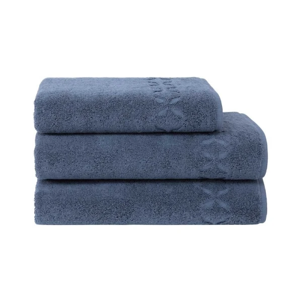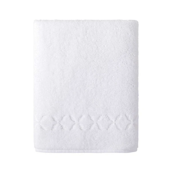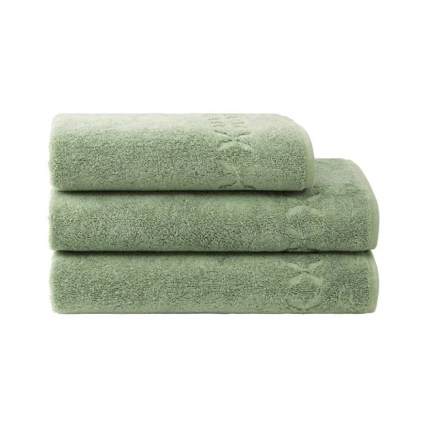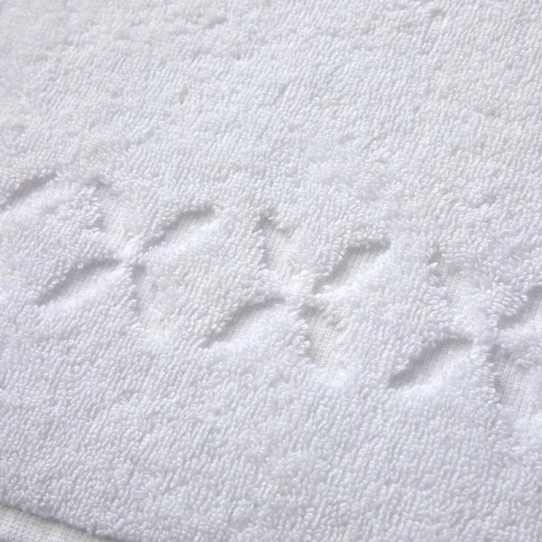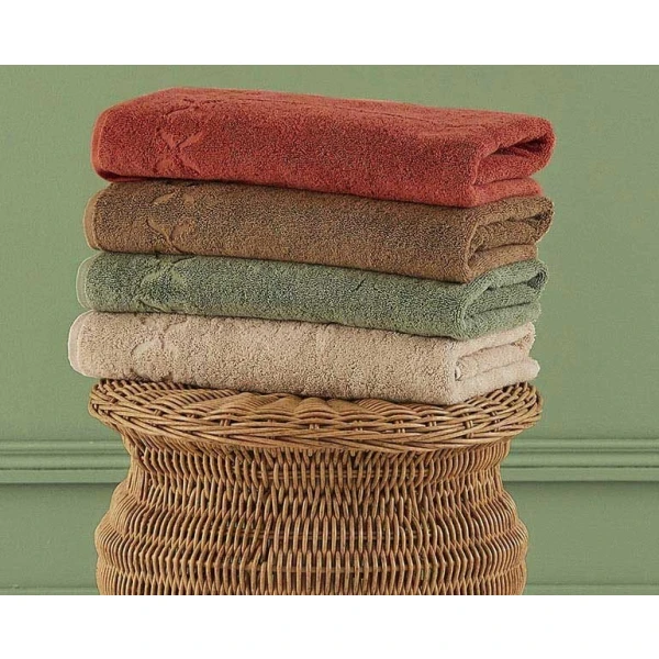 Solid-colored short loop terry with a simple flat hem finish. Pretty motif with chiseled stylized leaves. 100% organic cotton, 600 grams. Made with care in France.