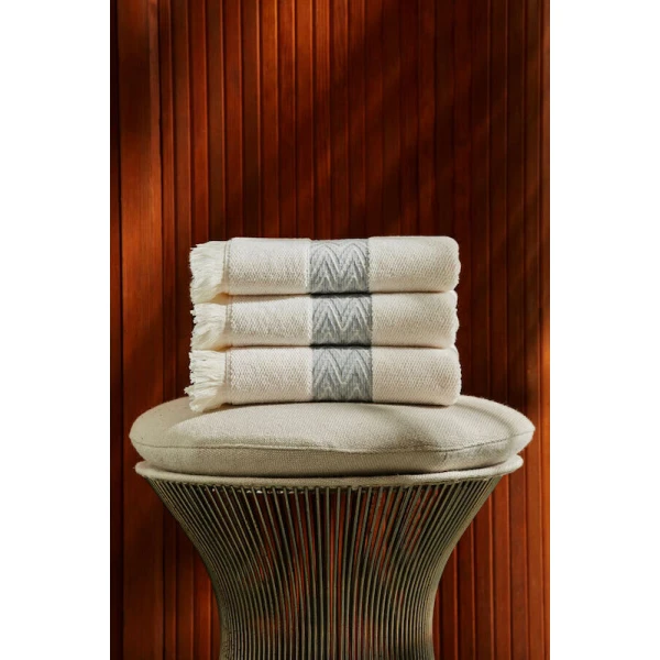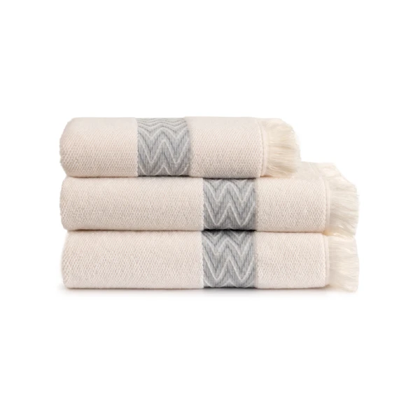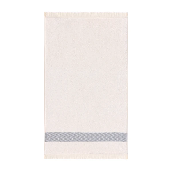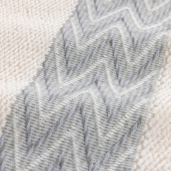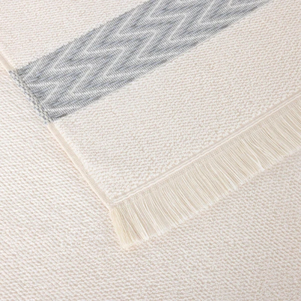 Yves Delorme's Ombree Bath Linens Collection is sophisticated. The design has a herringbone pattern in heathered soft blue-grey shades. Jacquard weave, fancy border and fringe Finish. 100% organic cotton, 500 gsm. Made in France