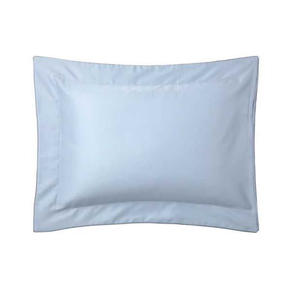 Flat sheet in Céleste blue with a double 5-inch hem in woven dyed fabric and fine braid finish.