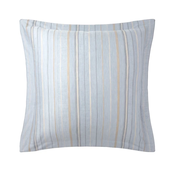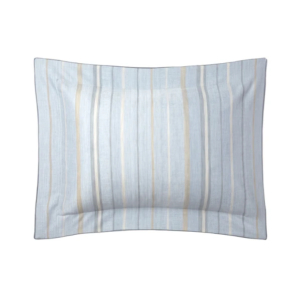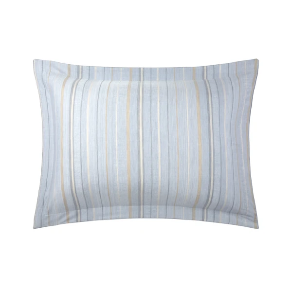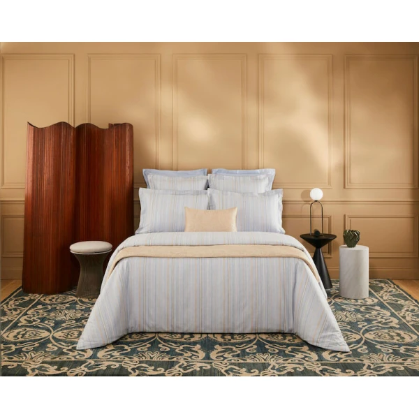 Yves Delorme's Ombree Bed Collection has elegant stripes. The design is crafted with a blend of cotton threads, offering an enduring style. Its design combines textured reliefs, heathered effects, and shades of blue-gray for a soft and inviting feel. Woven dyed sateen. 100% organic long-staple combed cotton. 300 thread count.  Made in France.