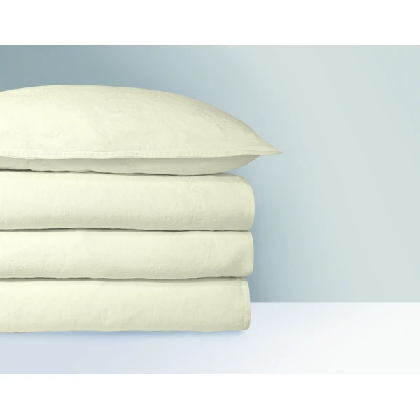 Originel is 100% linen -- stonewashed for a soft hand and overall color effect.  Makes a wonderful bed for summer !  Unlike other Yves DeLorme patterns, the shams have a mini flange all around. Retired in the color Linen (sand).  Limited to stock on hand -- one standard sham.