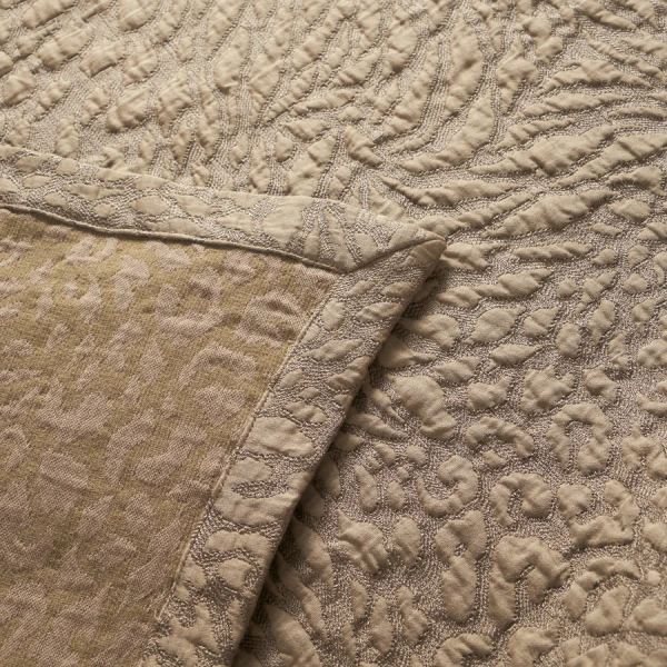 Yves Delorme's Souvenir Coverlet has a wonderful look that is versatile for the top of the bed. It's jacquard weave adds dimension and character to any bed. Finished with 1 inch hem and mitered corners. 64% cotton / 24% acrylic / 12% silk. Matching oblong pillow with zipper closure comes with 95/5 insert.