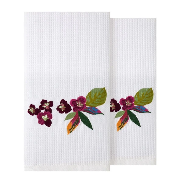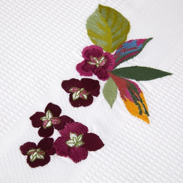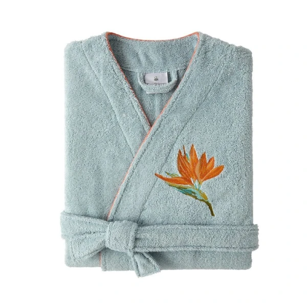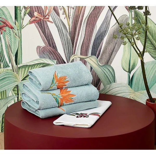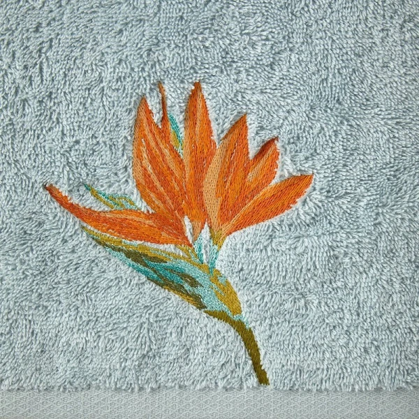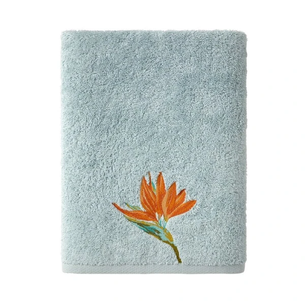 Yves Delorme's Utopia Bath Collection features embroidered tropical floral blooms on a solid Horizon blue.  This collection is designed to accompany the Utopia bedding collection. 100% organic cotton terry.  Made in Turkey.